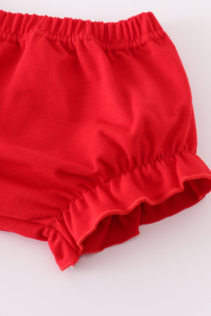 Get ready for some fun in the sun with this adorable Flag embroidery bloomer set! Featuring delicate flag embroidery on the bloomers and a matching top, this set is perfect for your little one to show off their style while staying cool and comfortable. Time to break out the sunscreen!
