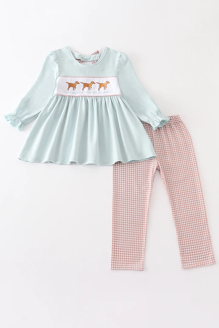 Green Dog Embroidered Set