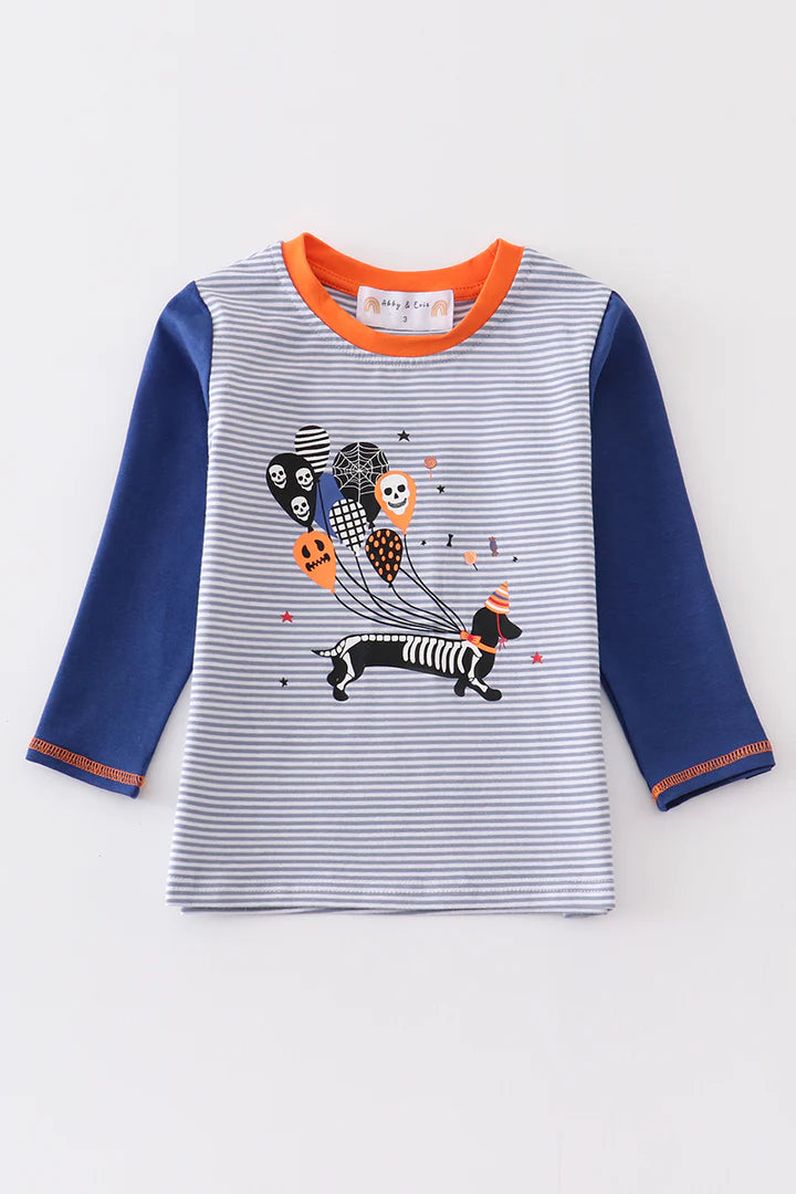 Boo! Your pup will be so spooktacularly stylish in this wickedly cute Halloween stripe dog applique boy top. Perfect for all the upcoming fright festivities, this doggo apparel is sure to have 'em howlingly happy!
