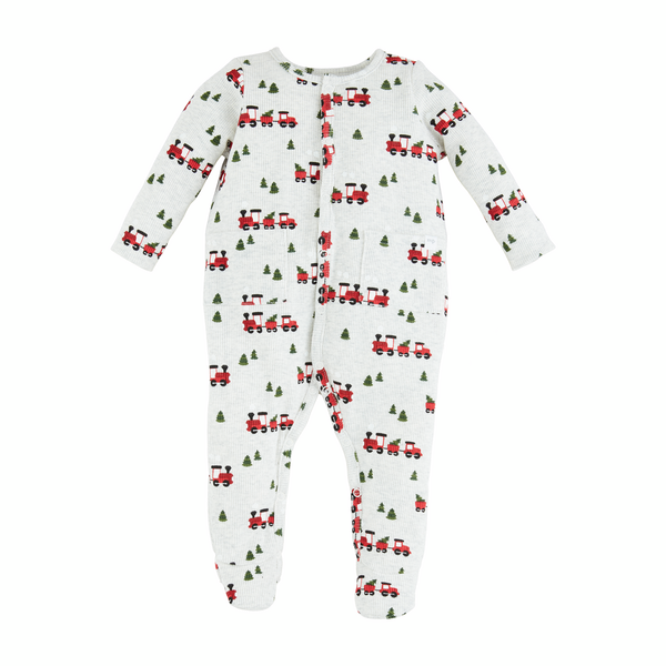 Waffle weave cotton footed sleeper features front pockets and front and inner leg snaps.